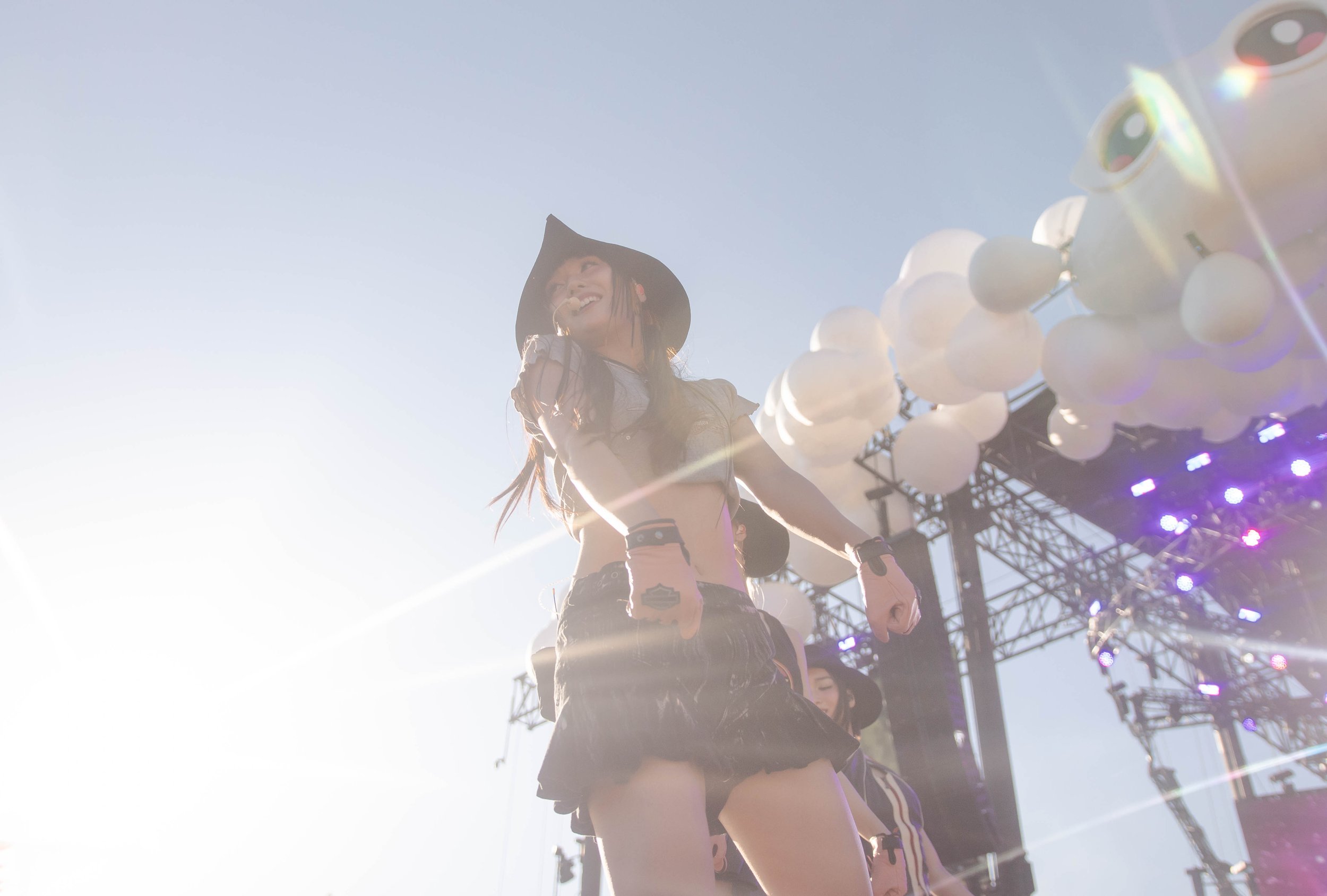 Despite the heat, attendees excitedly entered the venue adorned with beaded bracelets, pink cowboy hats, crocheted tops, light sticks, and Japanese-style parasols to keep cool.