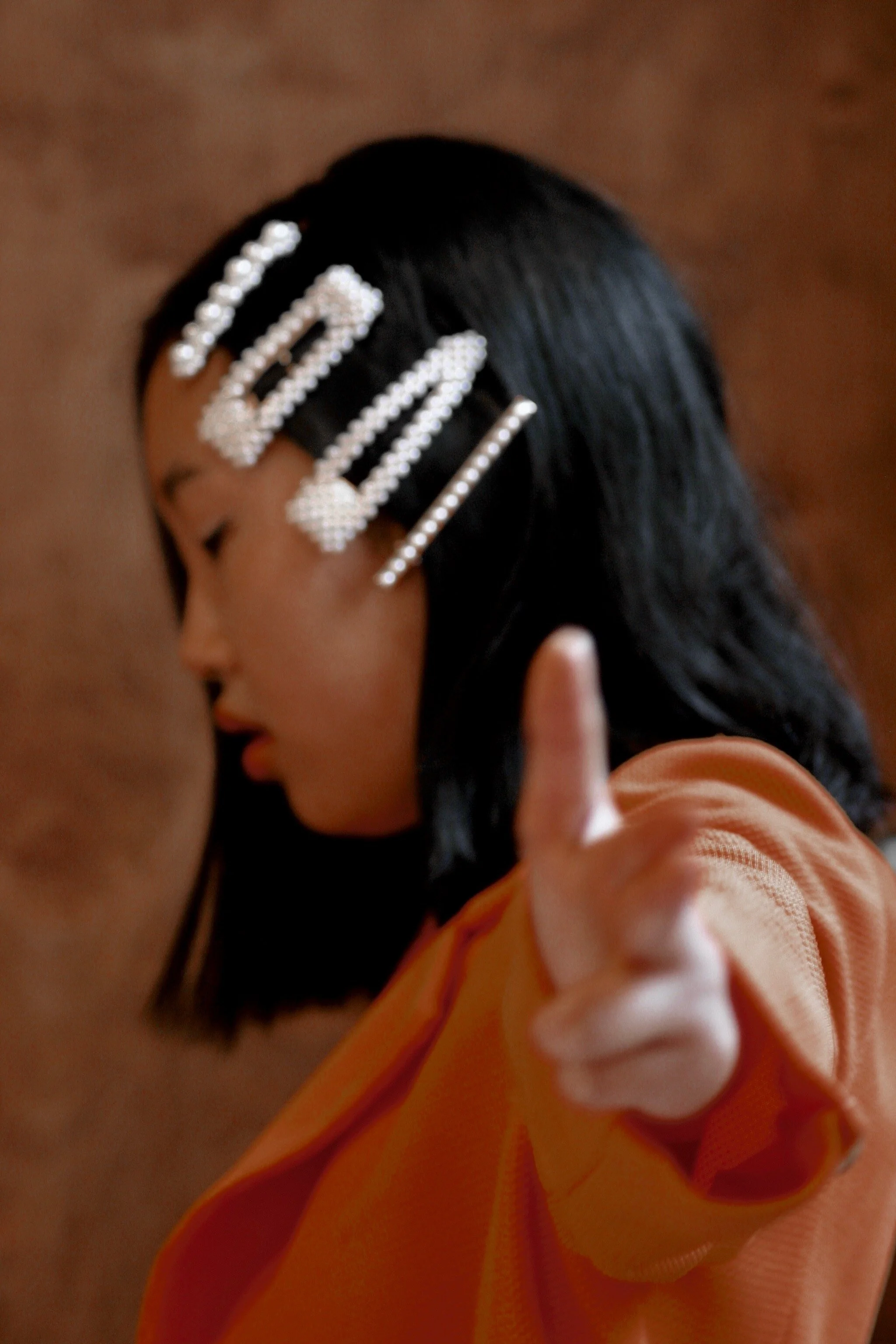 I love these shots of Samantha because the only thing I could think of as she was posing, was that she resembled one of the colorful and eccentric characters from a Quentin Tarantino film. as a director, he has made a lot of questionable decisions around the representation of actors of color, so it's satisfying to be able to create my own representation through these photos. In my head now, this character with white barrettes and an orange blazer is real, and I treasure it.